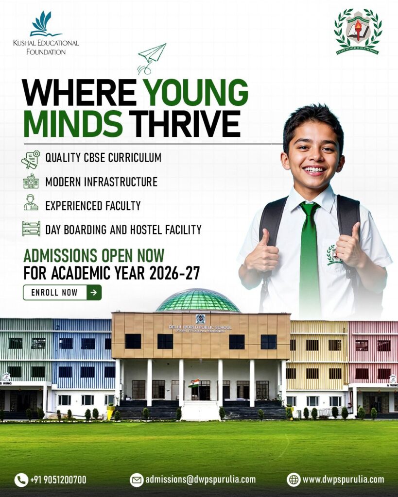 DWPS Purulia provides state-of-the-art classrooms, labs, libraries, and sports facilities, creating an ideal environment for learning and extracurricular growth.